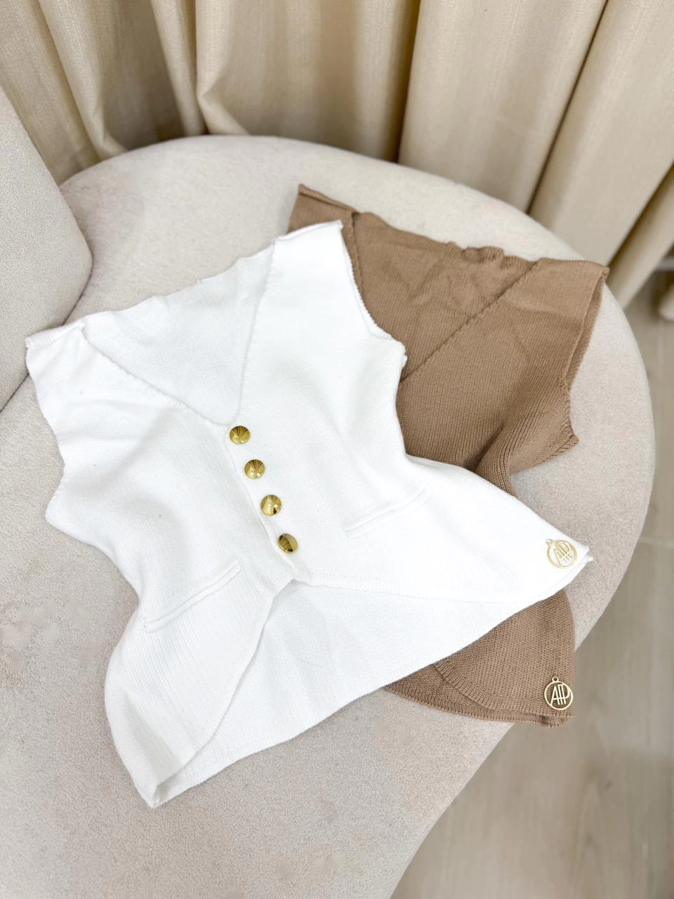 Descubra o Colete Gabriela, confeccionado em tricô modal de alta qualidade, que veste do 36 ao 42 com caimento perfeito. Seus detalhes em botões dourados adicionam um toque elegante e moderno ao visual, ideal para diversas ocasiões.